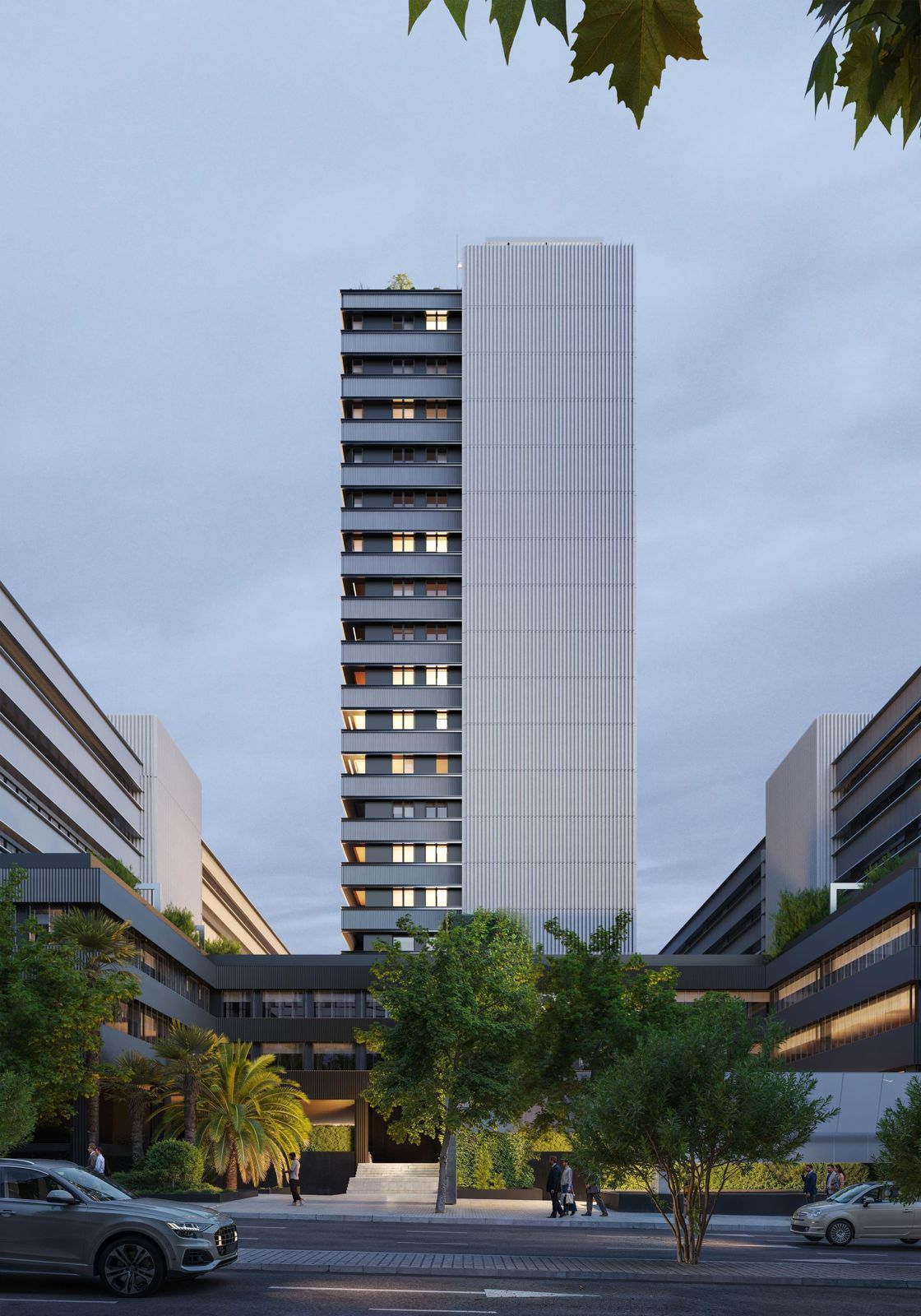 Its contemporary architecture — defined by glass façades and sleek white concrete terraces — gives the complex a unique visual identity within Madrid’s urban landscape, positioning it as a new landmark on the city’s skyline.